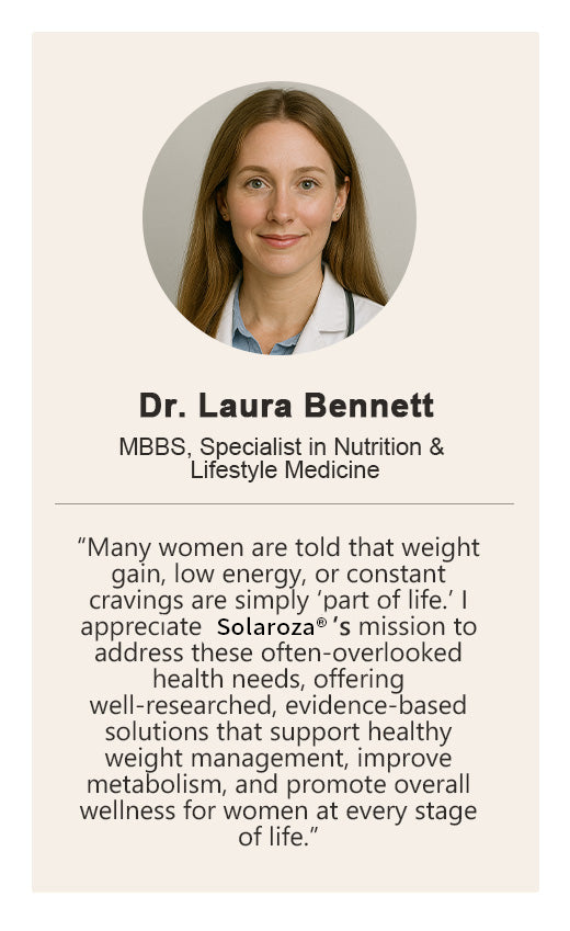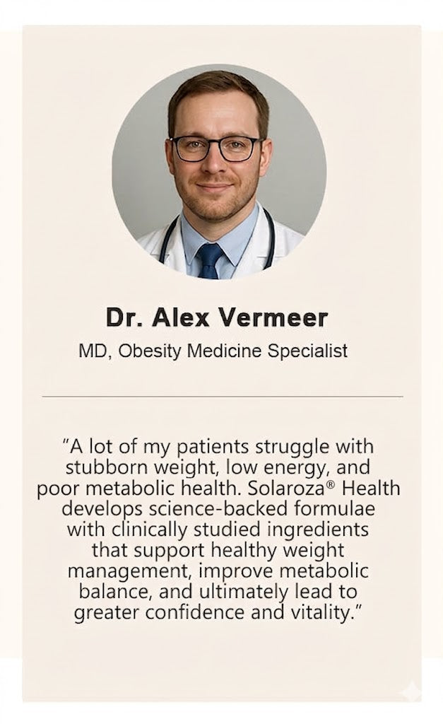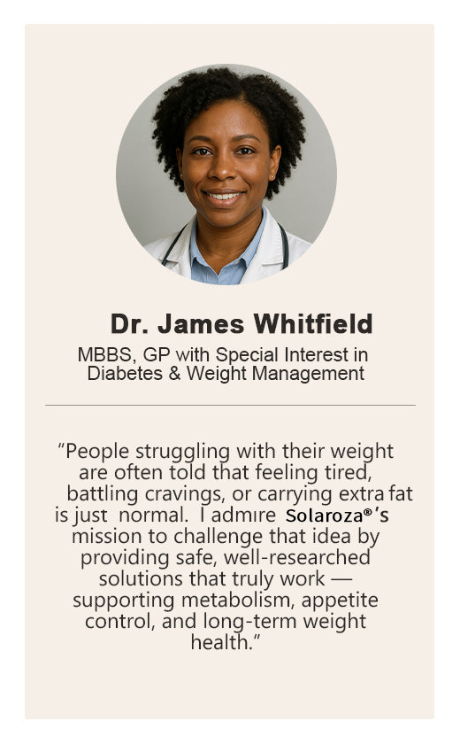 No restrictive dieting or specific dietary changes are required. Solaroza® gently supports appetite control and metabolic health, helps to improve insulin sensitivity, and naturally optimises fat burning
